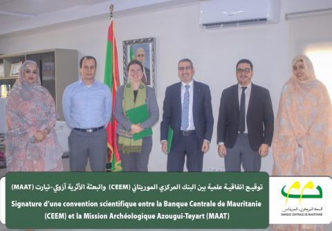 وقّع البنك المركزي الموريتاني، من خلال مركز الدراسات في الاقتصاد النقدي (CEEM)، والبعثة الأثرية آزوكي–تيارت (MAAT)، بتاريخ 12 فبراير في نواكشوط، اتفاقية علمية مخصّصة لمشروع «أزوكي ووادي تيارت: علم الآثار، التراث، والتنمية».