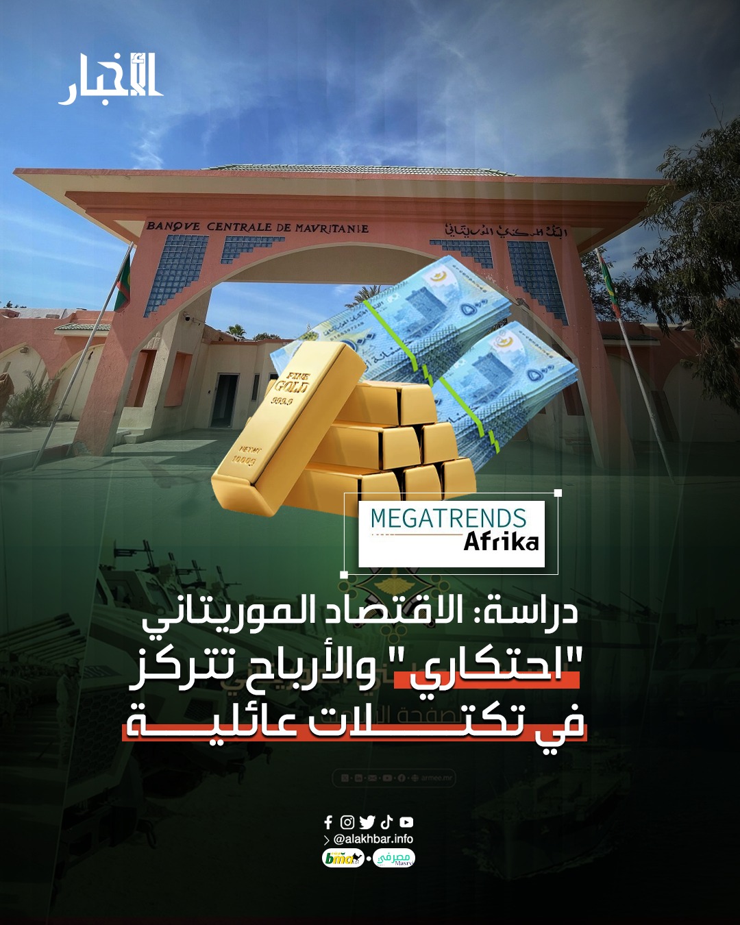 وصفت دراسة أعدها مشروع "التوجهات الكبرى في إفريقيا" الاقتصاد الموريتاني بأنه "احتكاري بشدة.. حيث تتركز الأرباح في عدد صغير من التكتلات العائلية التي تمتلك أيضا مصارفها الخاصة، منبهة إلى أن هذه التكتلات والبنوك خاضعة للفصائل النخبوية ذاتها التي تهيمن على السياسة.